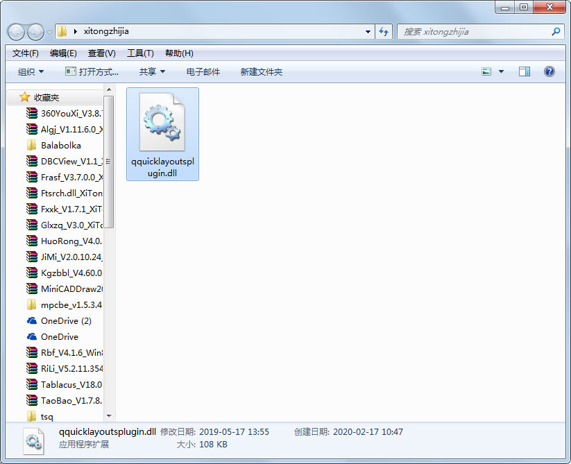 2、复制文件“qquicklayoutsplugin.dll”到系统目录下;