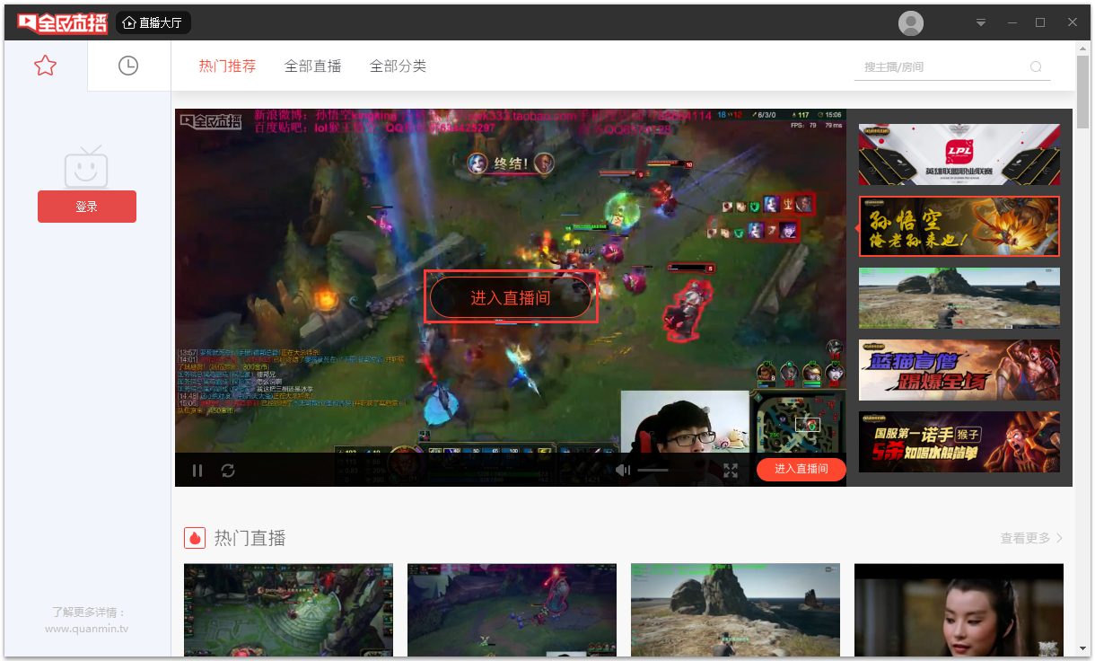 1、全民直播平台是一款可以帮助您在电脑上观看直播的软件,支持游戏视频、短视频、主播视频查看。