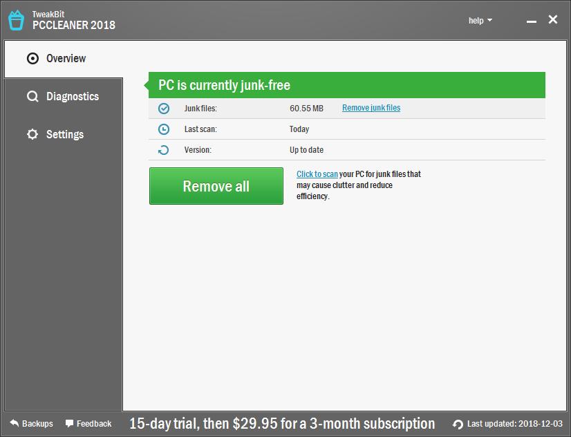 TweakBit PCCleaner官方版是一款非常不错的系统清理软件,此款软件界面美观,功能强劲,能够清理硬盘驱动器的程序,操作起来简单方便,能够安全地清除Windows和用户生成的临时文件。