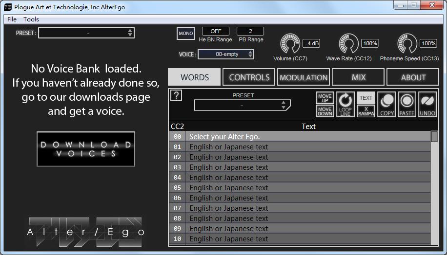Alter/Ego是一款好用且专业的歌唱合成器,其主要作用是可以将一些声音变成歌曲,比如常用的乐器声音,又比如身边的人的声音或是自己的声音,通过Alter/Ego可以进行调音、音乐制作、鬼畜等工作,软件本身界面华丽,适合新手使用。
