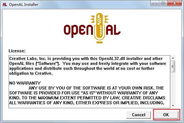 7、安装完后会弹出“OpenAL Installer”窗口,再次点击“OK”;