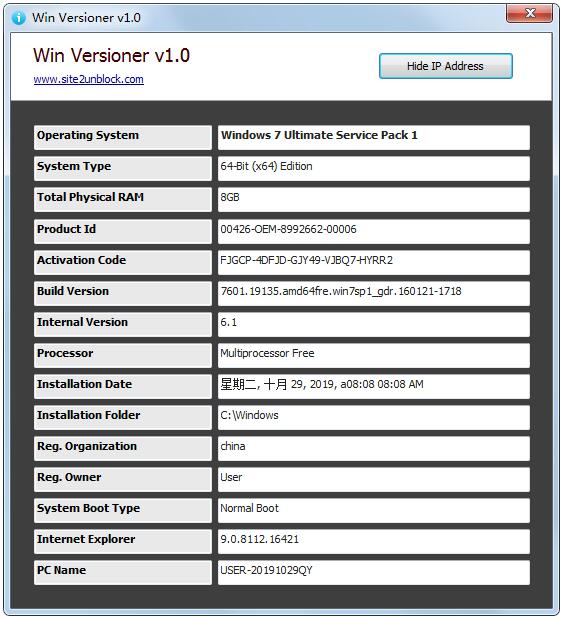 Win Versioner(系统信息检测工具) V1.0 英文安装版