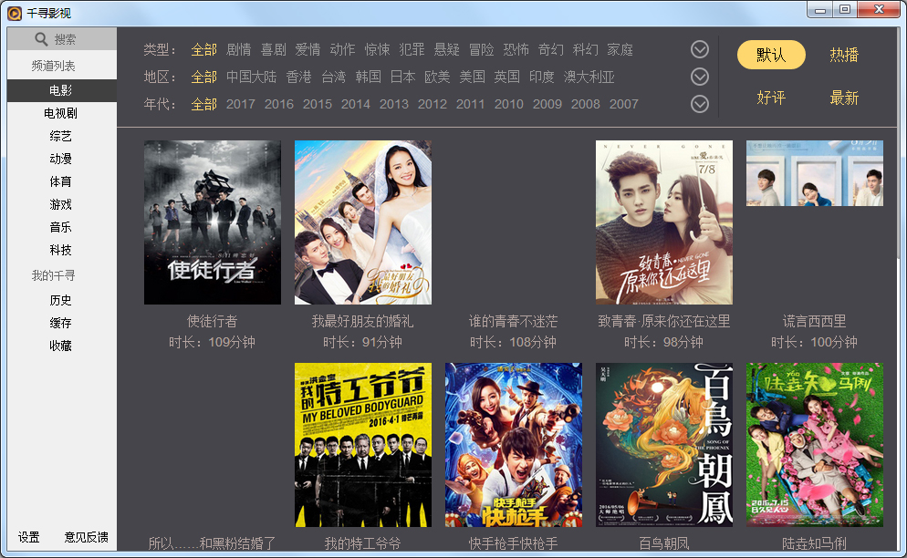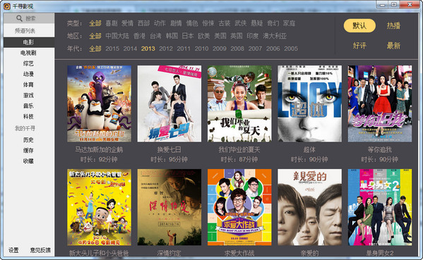 千寻影视电脑版是千寻网开发的一款网络视频导视软件,千寻影视电脑版数万部热门电影、电视剧、综艺、动漫365天不间断更新;更有传统搜索、精彩合集与排行推荐相结合的智能寻片系统,轻松找到爱片;此外支持超大海报浏览,一键快捷播放,及收藏夹与历史播放功能。