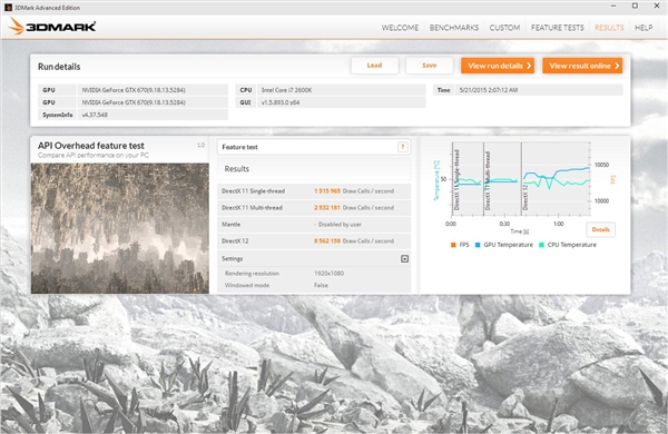 GTX 670显卡和Intel i7 2600K进行了DX13绘图对比测试