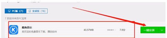 三、根据相关关键词,列出相应的软件,查找“酷狗音乐”,点击以下按钮安装。