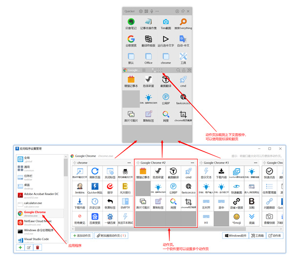 当您使用这个应用程序时,Quicker会自动加载这些动作页到上下文面板中。
