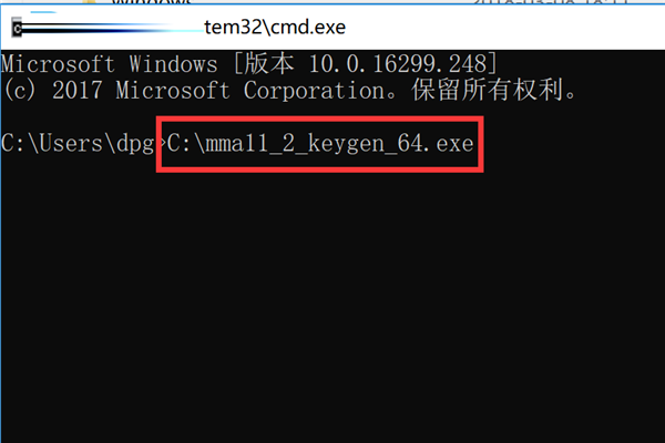 注意了,直接运行mma11_2_keygen_64.exe在计算激活码后会自动关闭,所以必须通过dos命令来运行注册机。