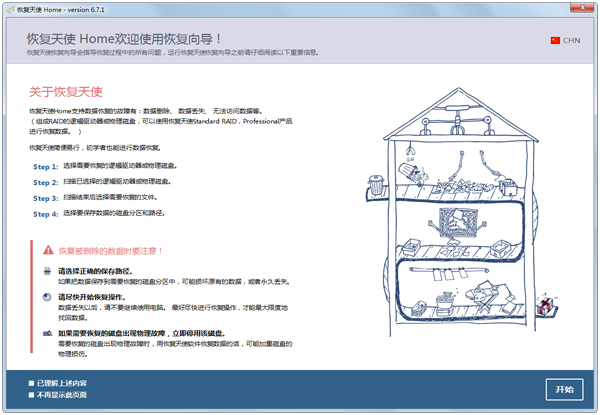 1.恢复天使家庭版/HOME产品简单易用,初学者使用简易(Wizard)模式只需按照提示点击轻松进行数据恢复的数据恢复软件。