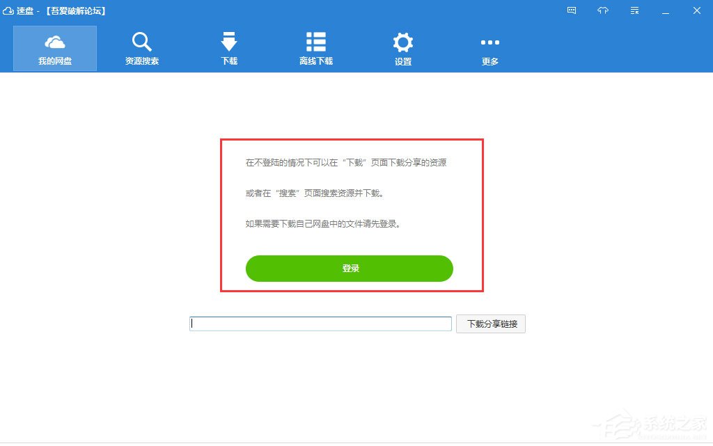 2、进入软件的我的网盘页面,支持进行登录的操作,并且可以对没有登录的使用限制进行查看;
