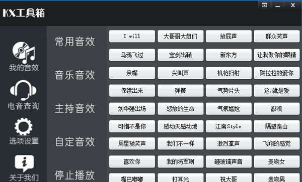 KX工具箱是一款可以自定义音效的软件。软件拥有海量音效库,提供常用音效、高效的主持音效,也可以自定义音效,支持设置热键、电音查询、窗口置顶等功能,对于调节气氛和控场非常有帮助,有需要的朋友赶紧下载体验吧。
