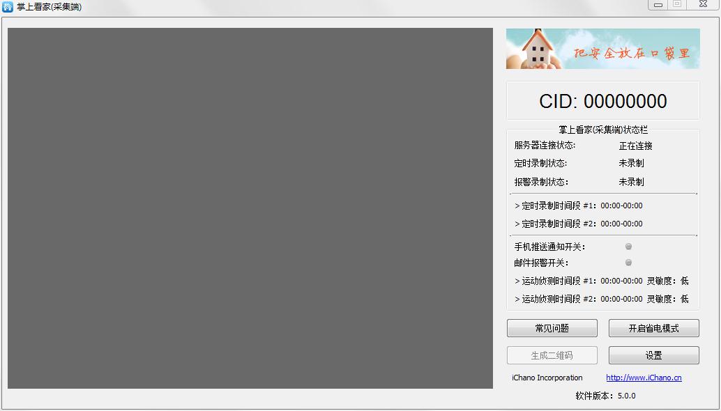 掌上看家采集端是一款功能强大的远程视频监控软件,完全免费,使用简单,安装后一键注册账号,添加CID设备名称后就能把电脑作为视频监控采集端,还能定时录制视频,软件可以帮你创建一个视频监控系统,要求也不高只要USB摄像头、一台电脑和一个智能手机就可以了。