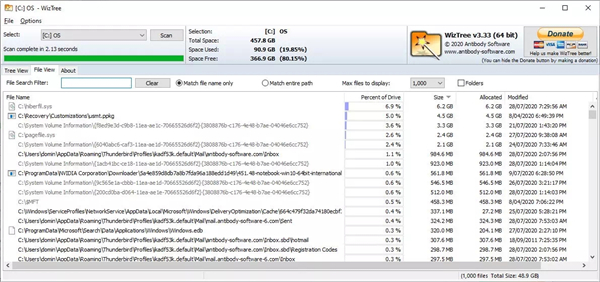 WizTree(磁盘空间占用分析器) V4.0 绿色便携版