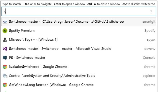 激活SwitcherooAlt + Space可以在“选项”中自定义此快捷方式。