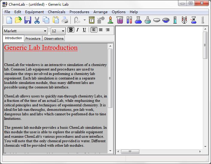 2、软件使用户能够快速演练化学实验,其使用时间仅仅是实际实验的一小部分,目的是强调实验的重要原则和实验的技术。它非常适合实验演练、示范、准备、危险实验和因为时间的限制不能进行的实验。