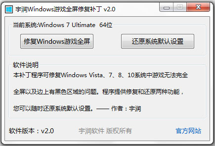 宇润Windows游戏全屏修复补丁 V2.0 绿色版