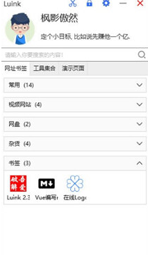 LuInk是一款非常好用的桌面快捷方式管理工具,因为原来的版本不支持高分屏,因此采用的了WPF重写。具有开机自动启动、单个页面里一次只能展开一个分组、关闭隐藏窗口等功能。非常的方便实用,需要的可以来本站下载。