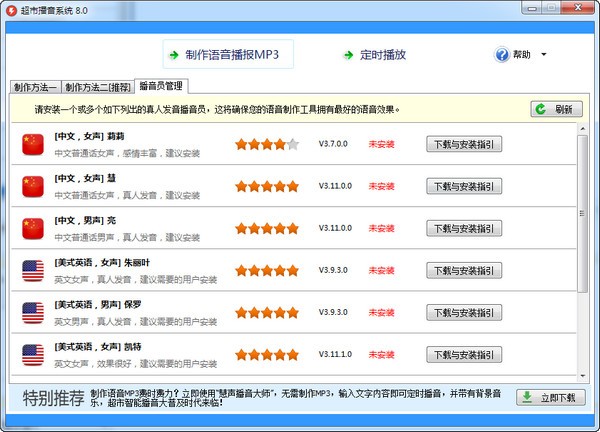 定时广播时,可以选择各国的播音角色来播放各国的语言,专业而又准确。