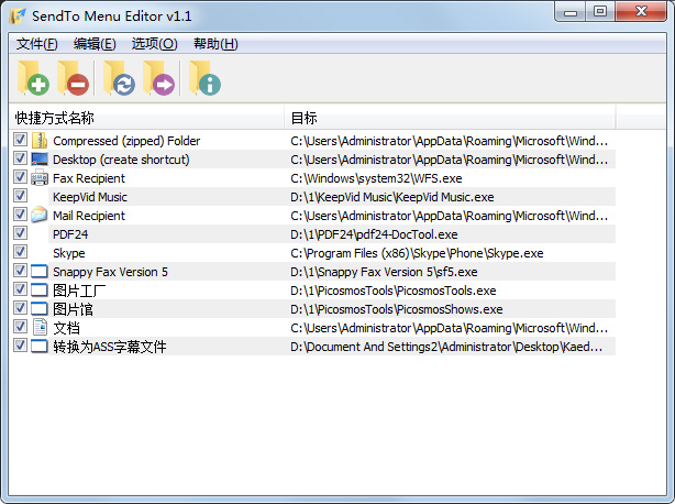 SendTo Menu Editor(右键菜单编辑工具) V1.1 绿色版