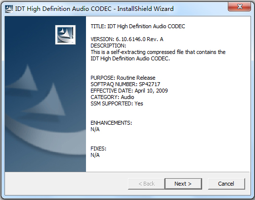 惠普HP cq35笔记本电脑声卡驱动程序For xp/vista,注意在安装声卡驱动之前要首先安装“声卡UAA总线驱动程序”。