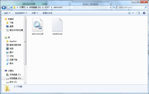 (2)将advrcntr2.dll文件放到提示丢失的文件的程序目录下。