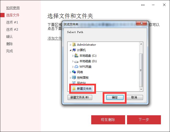 打开。点击Secure File Deleter主界面中的添加文件夹选择,打开文件夹浏览窗口,选择想要进行删除的文件夹;