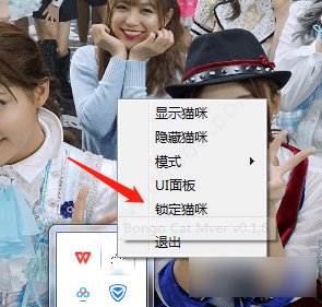 3、同样的在右键托盘有一个锁定猫咪/解锁猫咪。