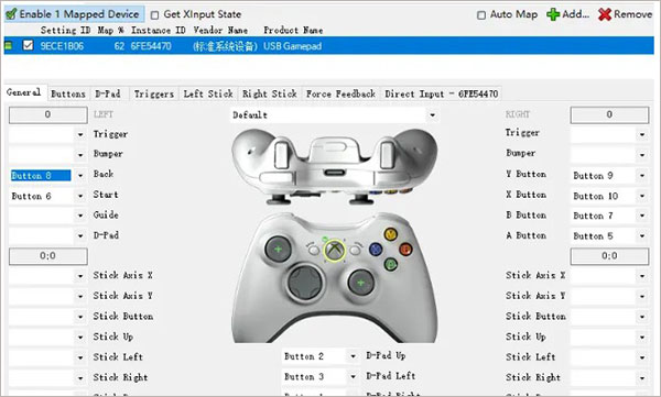 6、然后开始将手上的手柄映射到x360ce上;