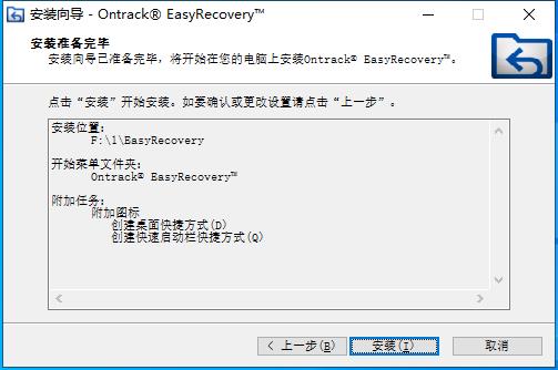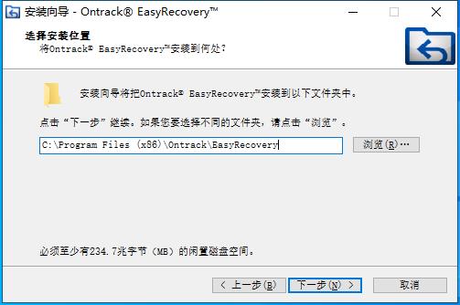 安装向导默认设置的软件默认安装路径为C:Program Files (x86)OntrackEasyRecovery。