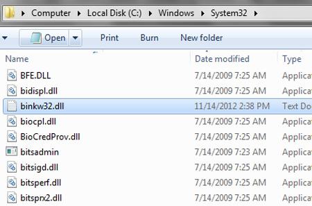 只需解压“32位系统”文件夹内的 binkw32.dll文件到“X:Windowssystem32” (X代表您系统所在目录盘符,如:C:Windowssystem32 )。