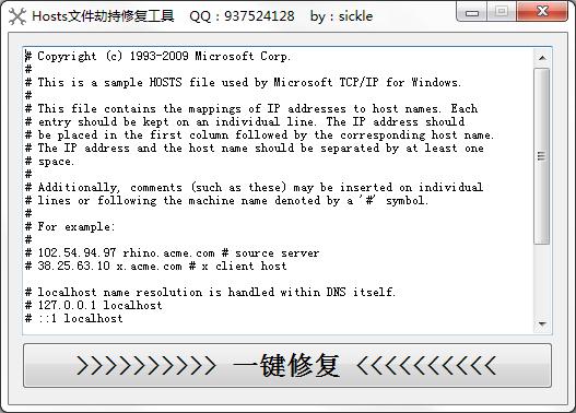下载打开Hosts文件劫持修复工具,直接点击修复即可。