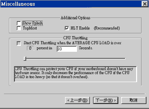 Decrease the temperature of the CPU when its overheated:如果您的电脑里面装有传感器,那就可以激活此选项,当机器过热时就可以自动激活CPU HLT 功能,减低能耗从而达到机器降温的目的。