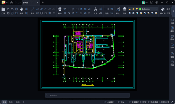 直线、圆、矩形、多段线等,标注长度测量面积一应俱全。