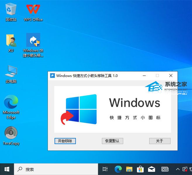 2. 移除小箭头:打开软件,点击“开始移除”按钮。工具将自动移除桌面快捷方式图标上的小箭头,并重新启动 Windows 任务资源管理器。