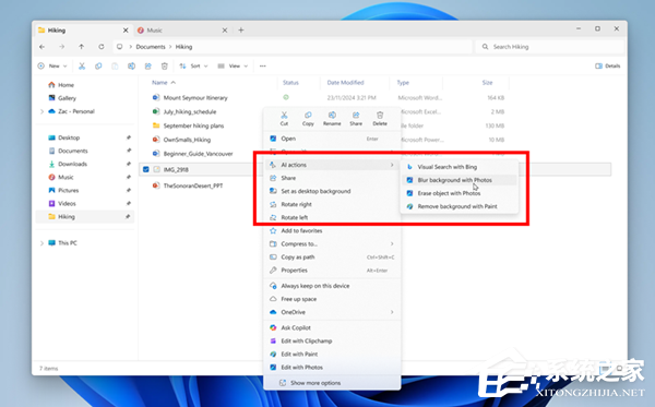 重点引入了 AI actions 功能,用户无需打开文件,只需右键文件,即可快速执行编辑图片或总结文档内容等操作。