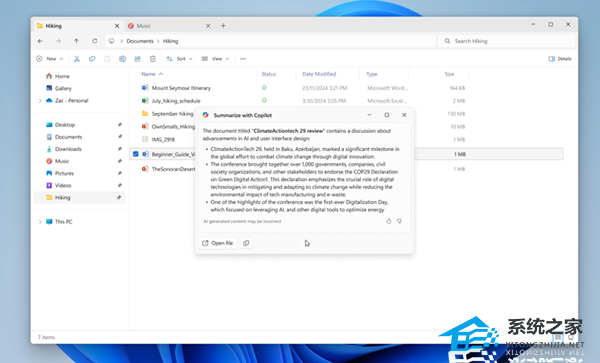 文件管理器引入 AI actions 功能