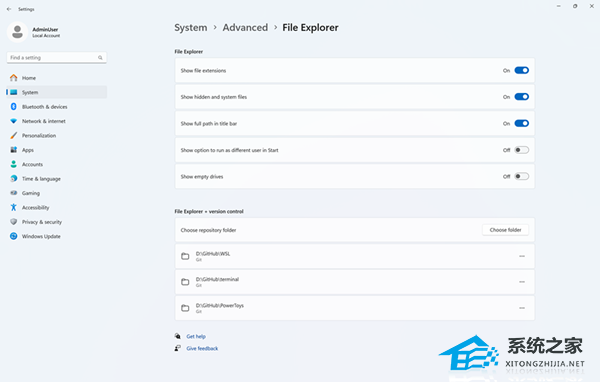 新版本在“设置 > 系统”中重新设计了“For Developers”选项,将其更名为 Advanced Settings 页面,新增功能包括启用长路径(去除 MAX_PATH 限制)、虚拟工作空间管理以及在 File Explorer 中显示 Git 信息。