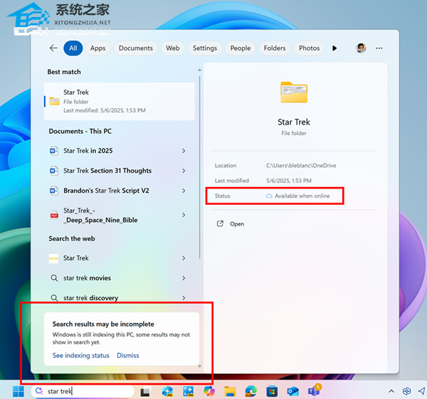 在显示搜索结果后,如果 Windows 仍在为用户电脑建立索引,微软会提供一条通知,告知您的搜索结果可能不完整,并附上一个链接以查看您的索引状态。用户可以关闭此通知。