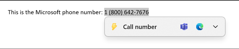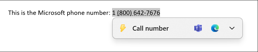 在复制电话号码时,Windows会弹出一个内嵌的light可忽略UI,建议使用团队或其他安装的提供点击拨号呼叫功能的应用程序来拨打电话号码。