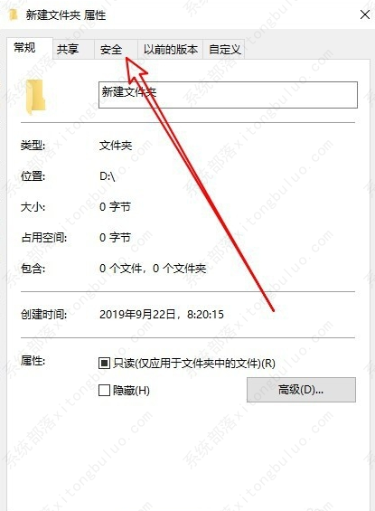3、接下来在打开的文件夹属性窗口中点击“安全”的选项卡。