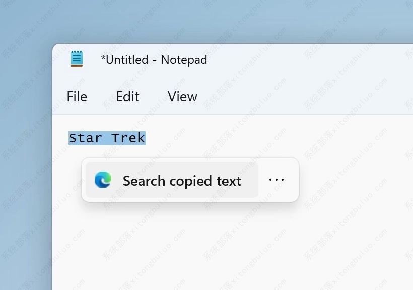 复制文本时,会出现一个可关闭的轻型 UI,建议在 Microsoft Edge 中搜索文本。